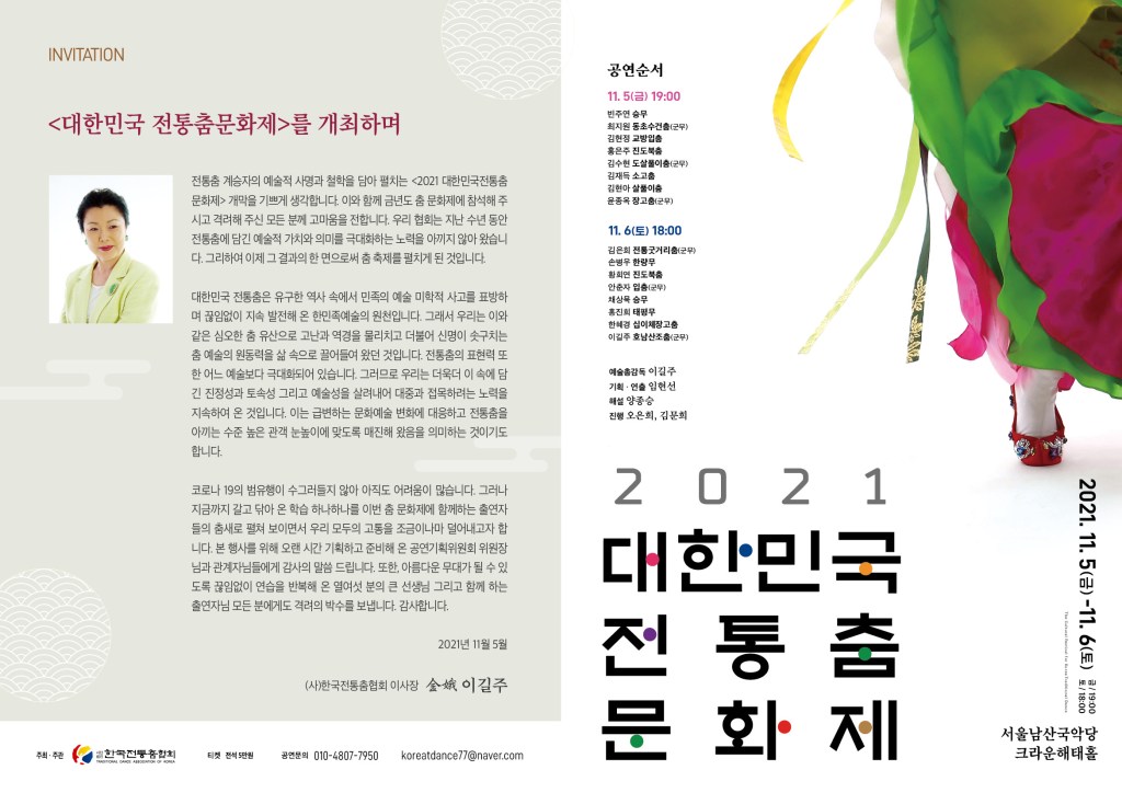 일시 : 2021년 11월 5일(금) 7pm ~ 11월 6일(토) 6pm장소 : 서울남산국악당 크라운해태홀