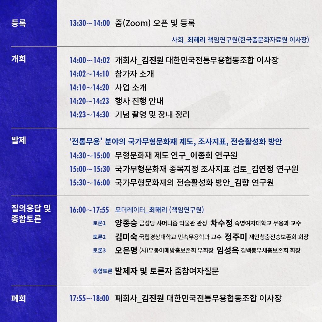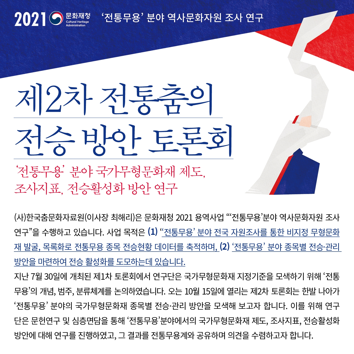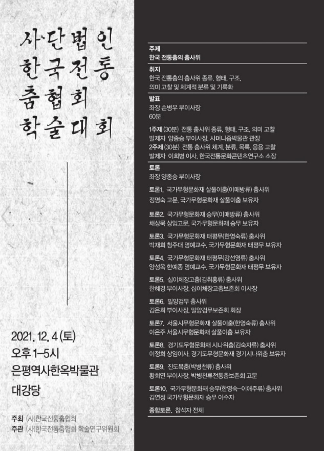 한국 전통춤의 춤사위일시 : 2021년 12월 4일 (토) 오후 1-5시 장소 : 은평역사한옥박물관 대강당